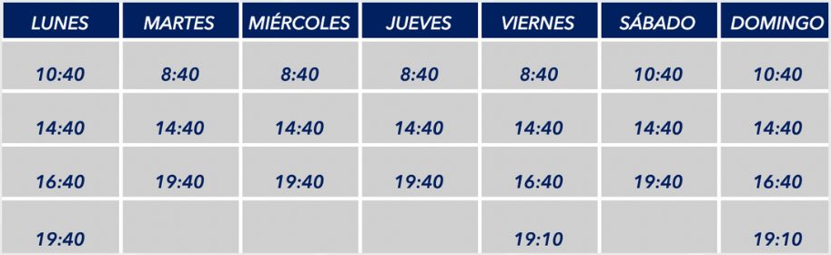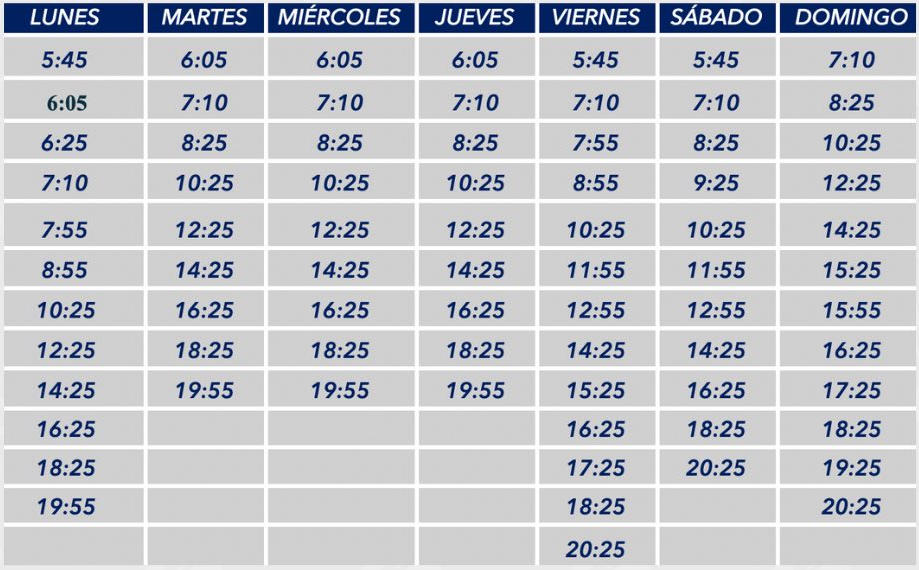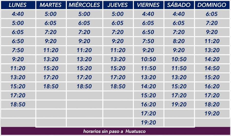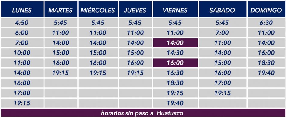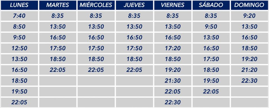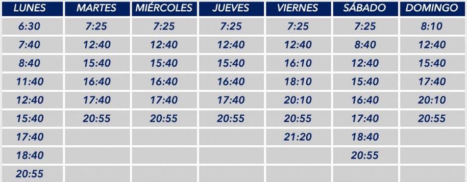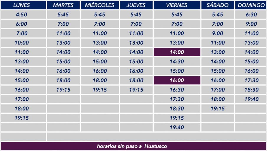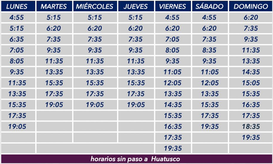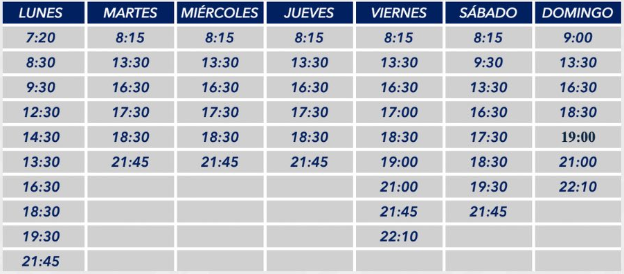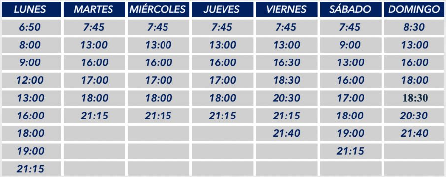 A continuación el sistema te arrojará los horarios disponibles para viajar con la empresa. También te ofrecerá información respecto al precio del boleto, duración del recorrido, asientos disponibles, horarios de salida.