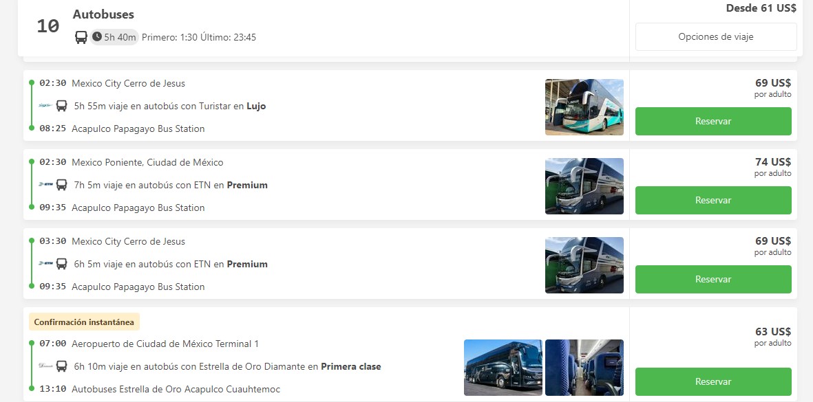 Pero antes, ten en cuenta que la comprar de billetes también puedes hacerlo en línea visitando el sitio web de la compañía de autobuses que elijas o de forma presencial acudiendo a la terminal de autobuses. Otras empresas permiten la compra de billetes arriba del autobús.